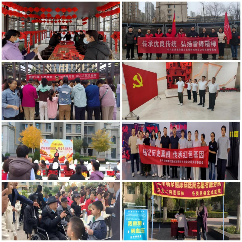 一是在蛇年春節(jié)前夕開展寫春聯(lián)送新春祝?;顒?dòng),感受傳統(tǒng)文化的獨(dú)特魅力。二是組織開展“學(xué)雷鋒 踐行動(dòng)”主題黨日活動(dòng),把組織生活與業(yè)主環(huán)境整治工作有機(jī)結(jié)合,弘揚(yáng)志愿精神,不僅幫助了生活困難的家庭,也美化了居住環(huán)境,進(jìn)一步增強(qiáng)了黨員青年的服務(wù)意識(shí)、責(zé)任意識(shí)及表率意識(shí),以實(shí)際行動(dòng)踐行黨員的先進(jìn)性。三是開展“慶六一、迎端午”小區(qū)文化活動(dòng),給孩子們提供一段快樂的時(shí)光,讓他們感受節(jié)日的快樂,同時(shí)也讓廣大業(yè)主品味傳統(tǒng)民俗文化,感受傳統(tǒng)節(jié)日的文化內(nèi)涵,增進(jìn)物業(yè)與業(yè)主的交流。四是組織黨員走進(jìn)八路軍蘭州辦事處紀(jì)念館以及觀看《南京照相館》,從百年黨史和革命先烈英勇事跡中汲取奮進(jìn)的力量,接受深刻的愛國(guó)主義洗禮和黨性教育。五是九九重陽(yáng)佳節(jié)舉辦文藝匯演暨公益服務(wù)實(shí)踐活動(dòng),大力弘揚(yáng)中華民族尊老、敬老、愛老、助老傳統(tǒng)美德。六是科普義診“請(qǐng)進(jìn)來”,以實(shí)際行動(dòng)踐行初心使命,把優(yōu)質(zhì)、便捷的醫(yī)療服務(wù)送到居民身邊,為居民送溫暖、送健康。