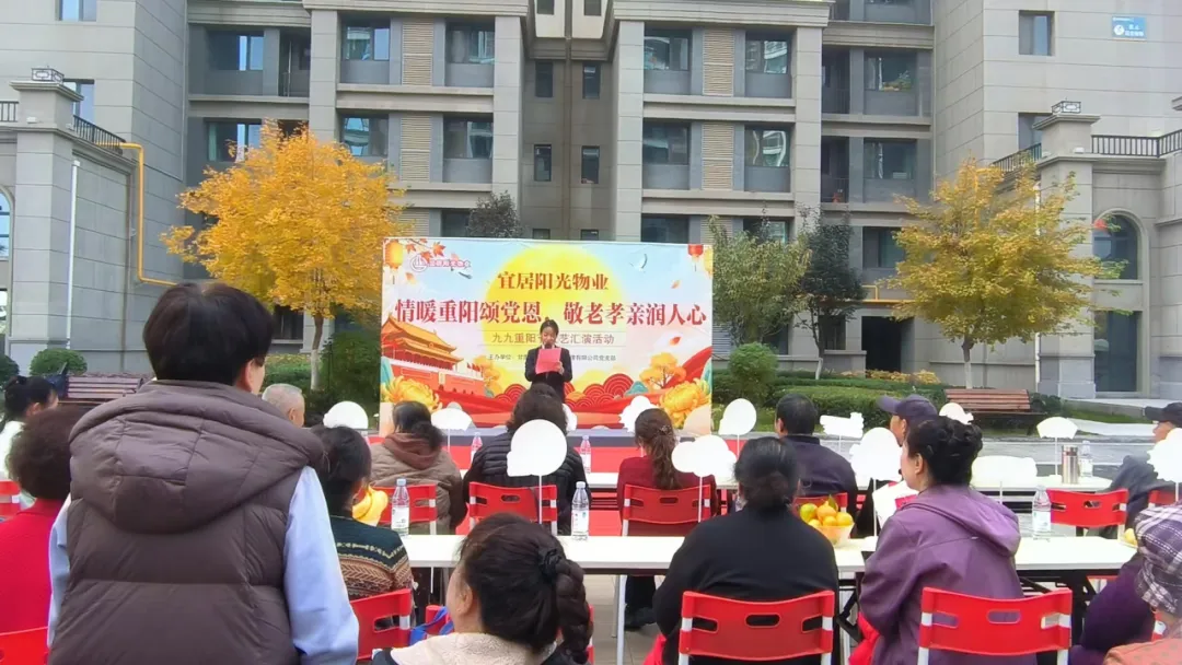 金秋送爽,菊香滿庭,為傳承敬老愛老傳統(tǒng)美德,彰顯黨建引領(lǐng)下的小區(qū)溫情,在10月29日重陽節(jié)當(dāng)天,物業(yè)公司黨支部聯(lián)合置業(yè)公司團(tuán)委在金悅府小區(qū)舉辦文藝匯演暨公益服務(wù)實(shí)踐活動。